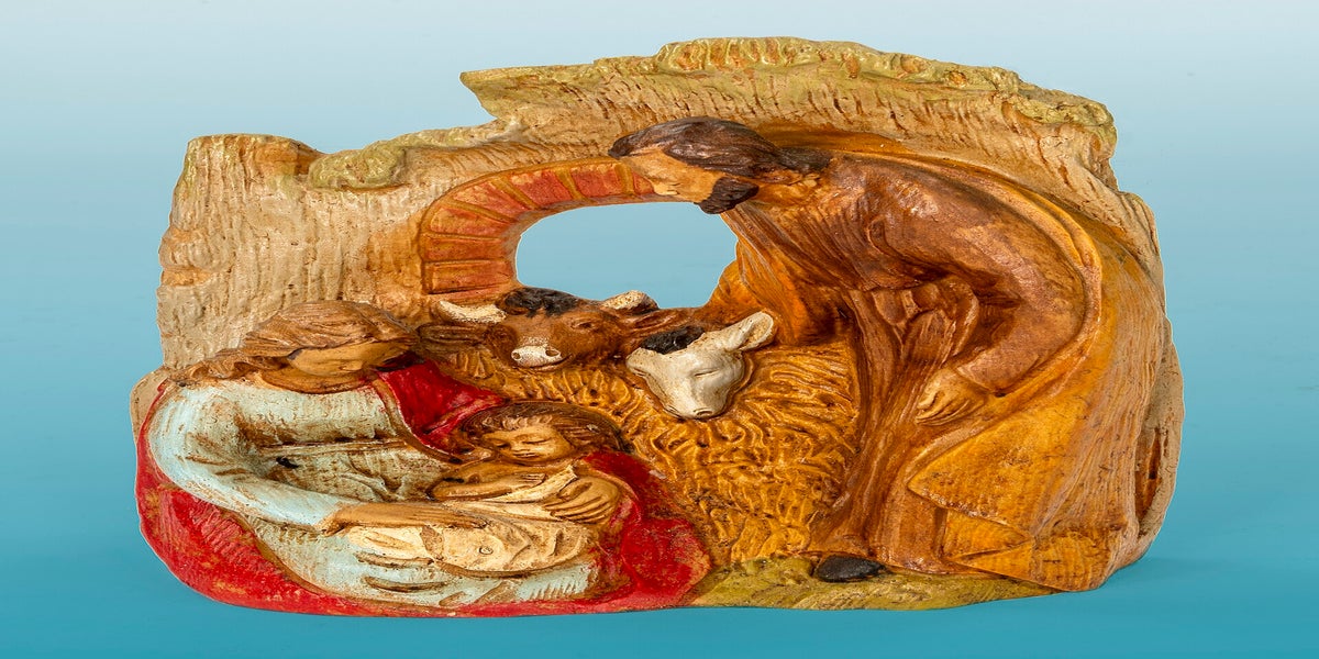 - Gipsen kerstgroep met merkteken M.G.V. (Michel Gitsels Venlo);