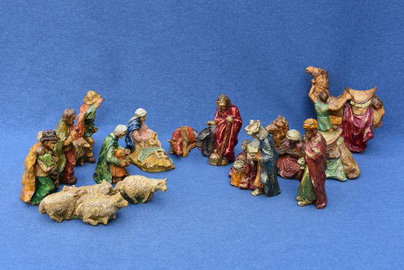 - 19-delige gipsen kerstgroep zonder merkteken;