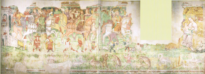 Fresco, muur verf, schilderen, voorstelling aanbidding door de Driekoningen